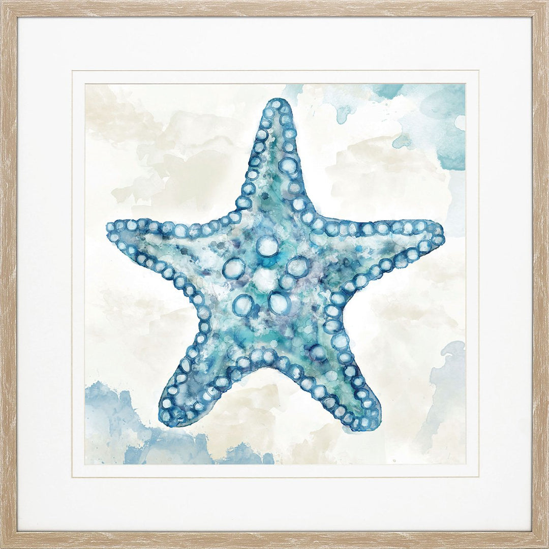 Keep the beach near you with the perfect inspired style wall art piece! Makes the perfect set for your beach home. Featuring a starfish and conch with a light brown colored frame, perfect for coastal vibes.