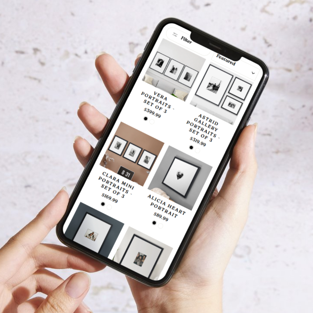 Pick your preferred frame color, photo size & orientation.